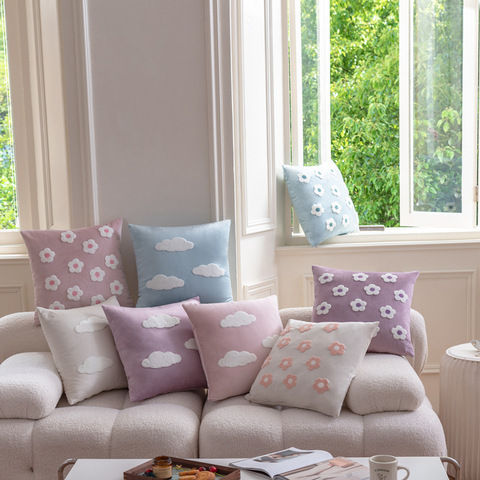 Sıcak satış 18X18 inç çiçek ve karikatür bulut çiçek desen işlemeli kadife yastık kapak kare kare ev kullanımı için